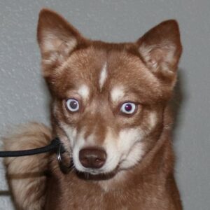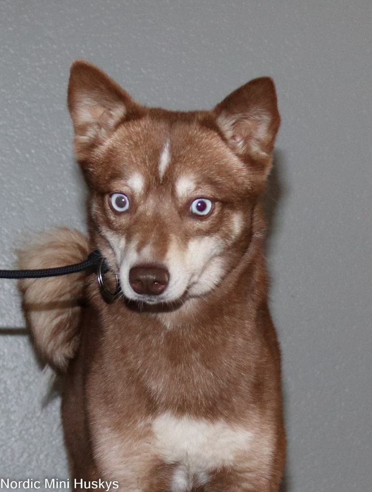Fornax is the goddess of the oven (fire). She is a small standard, dark red and white blue eyed beauty. Fully health tested.