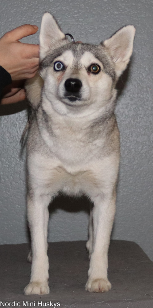 Ophelia as her name implies is as sweet as a Klee Kai comes. She is a standard grey and white, blue eyed stunner. Fully health tested.