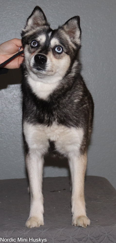 Ophelia as her name implies is as sweet as a Klee Kai comes. She is a standard grey and white, blue eyed stunner. Fully health tested.