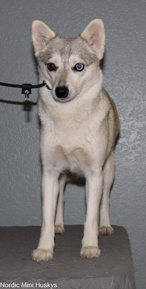 Ophelia as her name implies is as sweet as a Klee Kai comes. She is a standard grey and white, blue eyed stunner. Fully health tested.