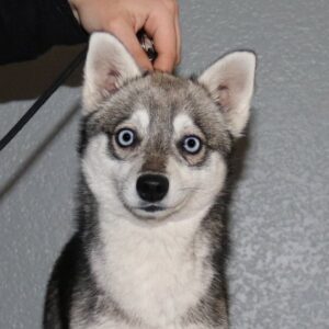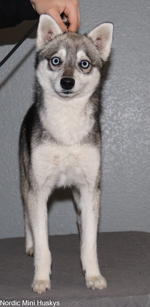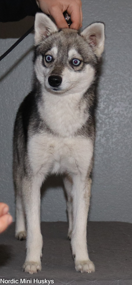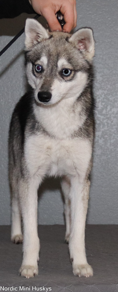 Ulysses is the most loving outgoing Klee Kai. He is a black and white double blue eyed standard. Fully health tested.